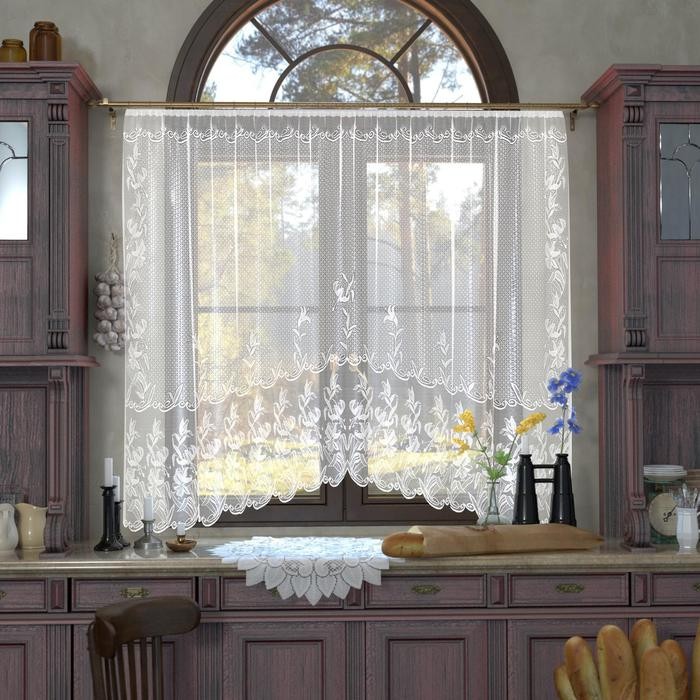 Штора кухонная со шторной лентой, ширина 245 см, высота 165 см, цвет ванильный сделает внешний вид обеденной зоны полным и законченным. Изящное оформление в виде причудливых узоров подчеркнёт ваш изысканный стиль и утончённый вкус.