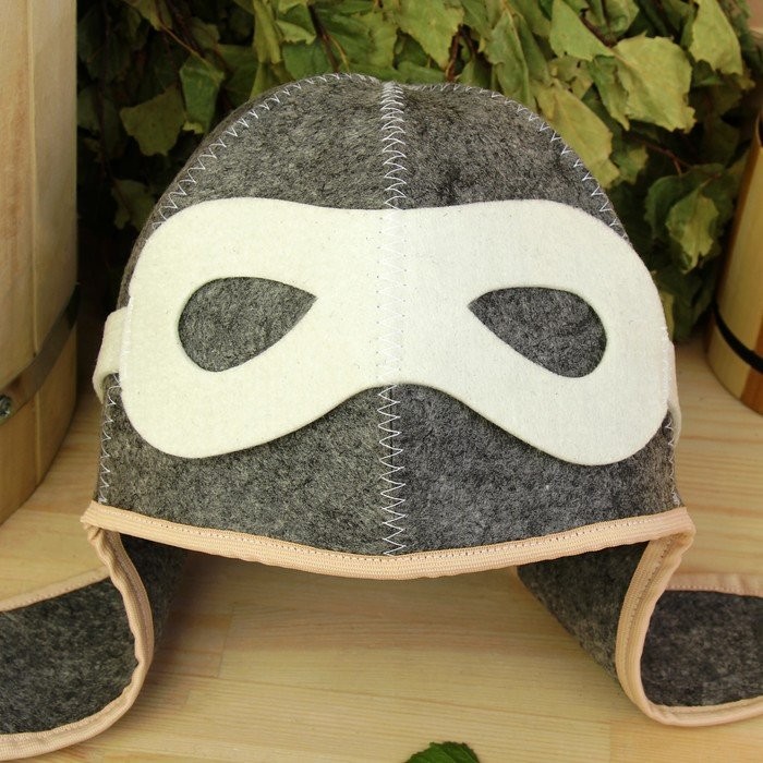 Шапка для бани «Летчик» войлок, серая, эконом