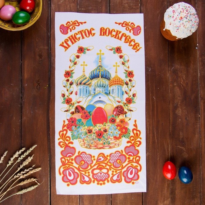 Рушник — один из самых древних и символичных предметов, дошедших до наших дней и не потерявших своего назначения. Пасхальный рушник (или салфетка) появился с принятием христианства на Руси. На нём изображены красивые православные храмы, религиозная символика и надписи «Христос Воскрес».