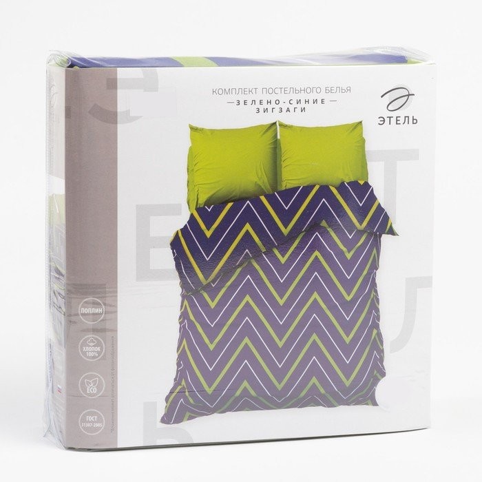 Постельное бельё Этель 1,5 сп «Зелёно-синие зигзаги» 143х215см 150х214см 70х70см 2 шт