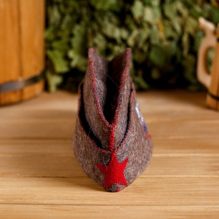 Шапка пошита из войлока с использованием натуральной шерсти — материала, который обладает низкой теплопроводностью (слабо нагревается даже при высоких температурах). Поэтому она надёжно защитит голову и волосы от жара. Уникальный дизайн, оригинальная форма и яркая надпись порадуют вас и окружающих.