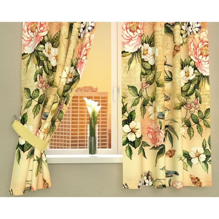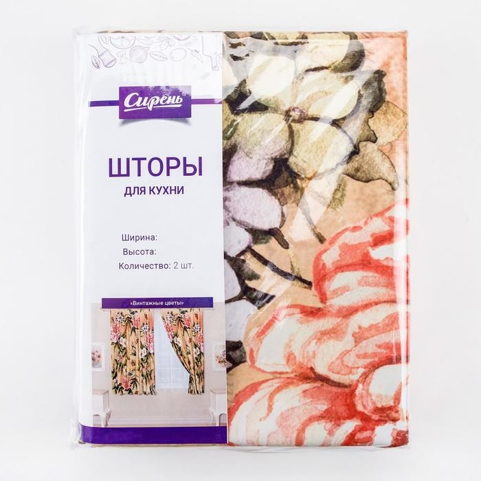 Фотошторы кухонные «Винтажные цветы», размер 145×160 см — 2 шт., габардин