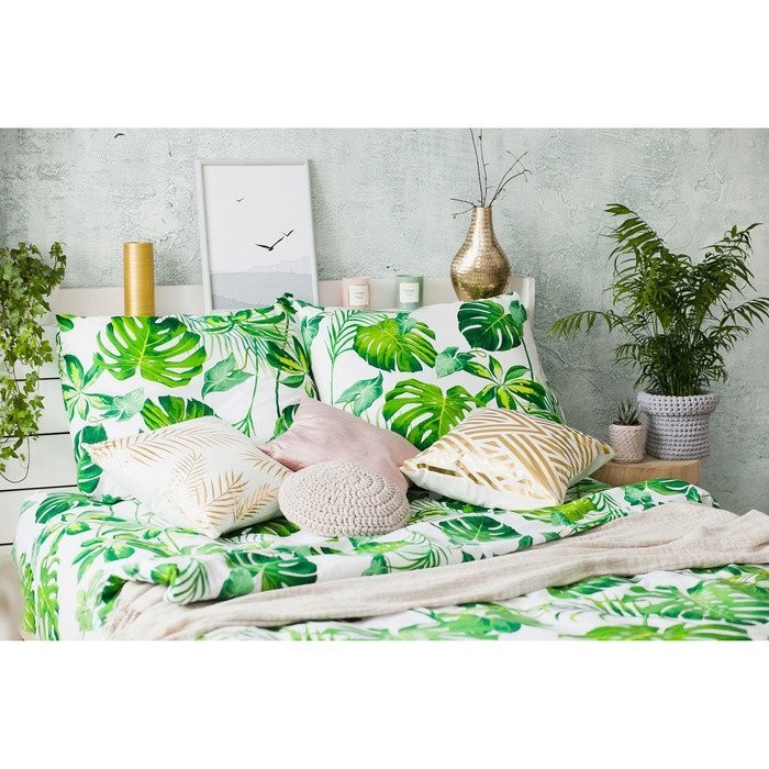 Постельное бельё «Этель» 1,5 сп., Монстера, размер 143×215 см, 150×214 см, 70×70 см — 2 шт