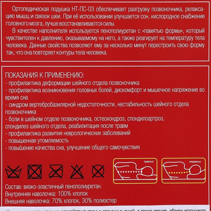 - Внешняя наволочка: хлопок (70%), полиэстер (30%).