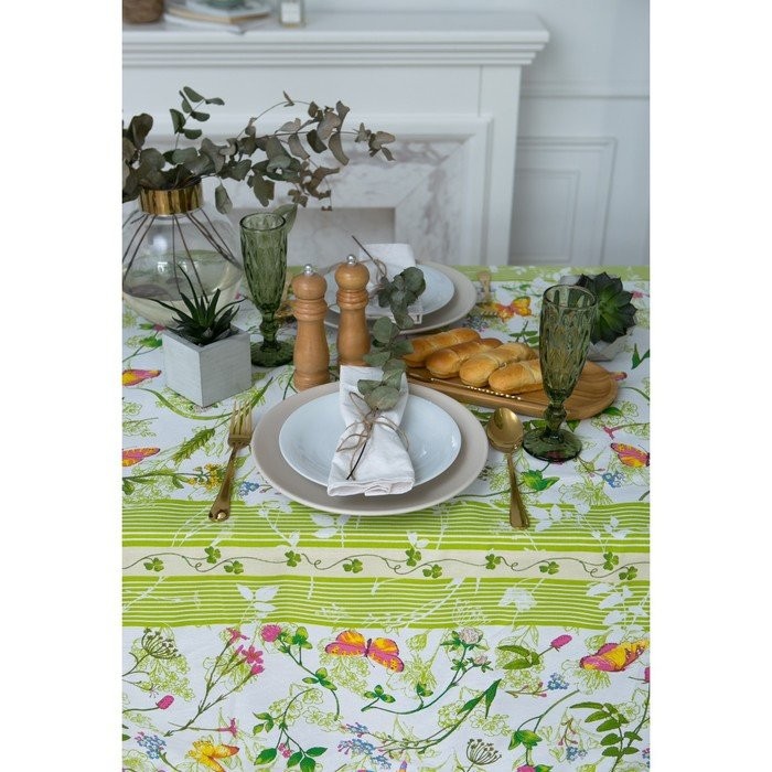 Скатерть «Доляна» Полевые цветы 220*144 см, 100% хлопок, рогожка, 164 г/м2