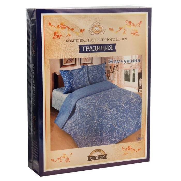Постельное бельё 2 сп"Традиция: Жемчужина», цвет голубой, 175×217, 180×220, 70х70см — 2 шт