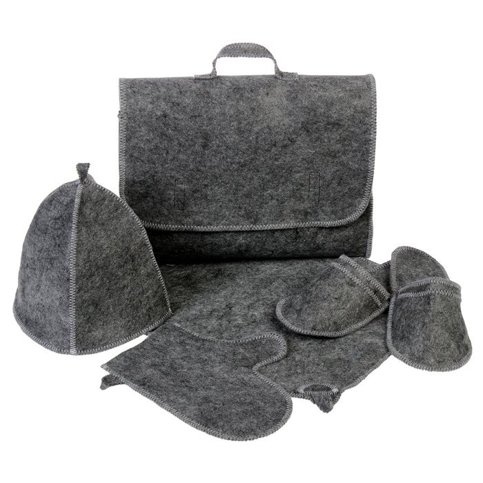 Для комфортного отдыха в парной возьмите с собой набор банных принадлежностей. Предметы из этого комплекта предохраняют тело от перегрева и являются средствами индивидуального пользования. Влажные изделия рекомендуется сушить в расправленном виде на горизонтальной поверхности. Принадлежности из войлока и фетра стирайте вручную при температуре воды 30 °C.