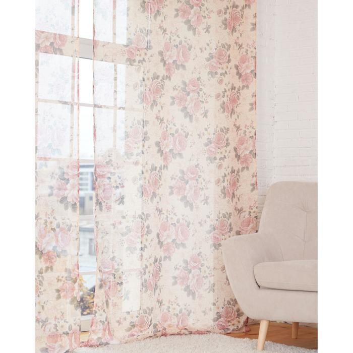 Штора тюлевая «Этель» 250×270 см Цветочная композиция без утяжелителя, 100% п/э