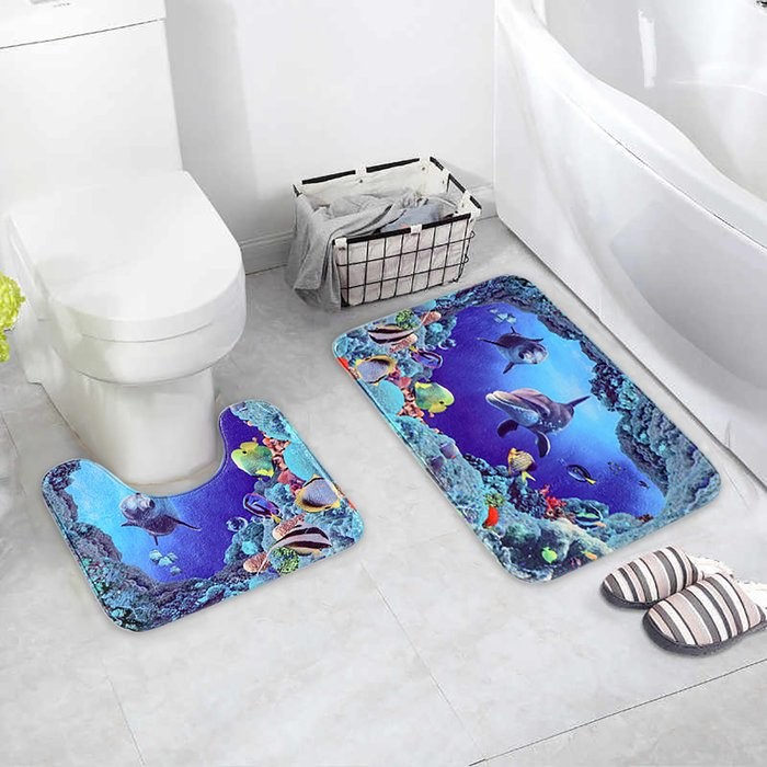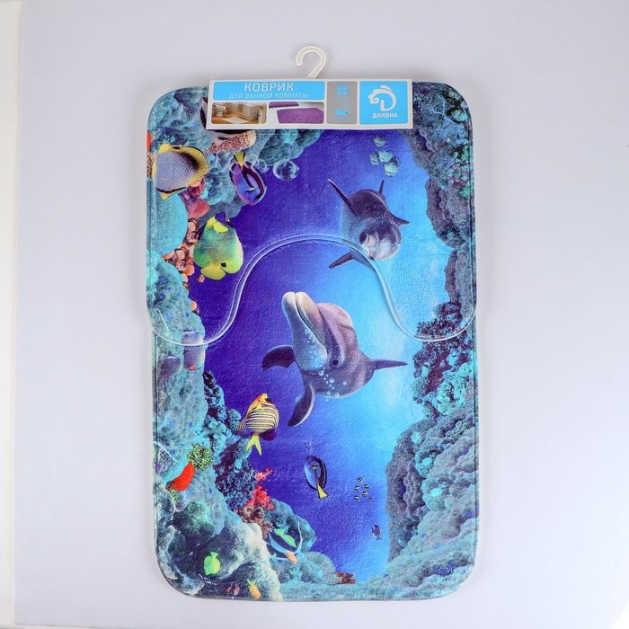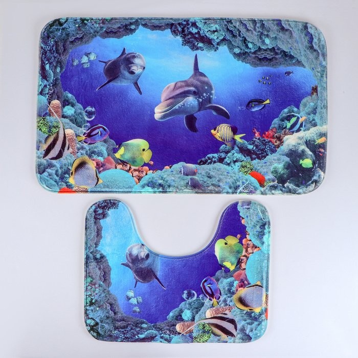 Набор ковриков для ванны и туалета Доляна «Морской мир», 2 шт: 40×50, 50×80 см