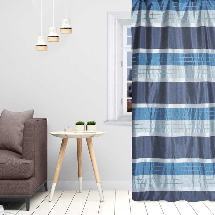 Тюль «Этель» 145×280 Гамма синий (горизонтальная полоса) б/утяжелителя, 100% п/э