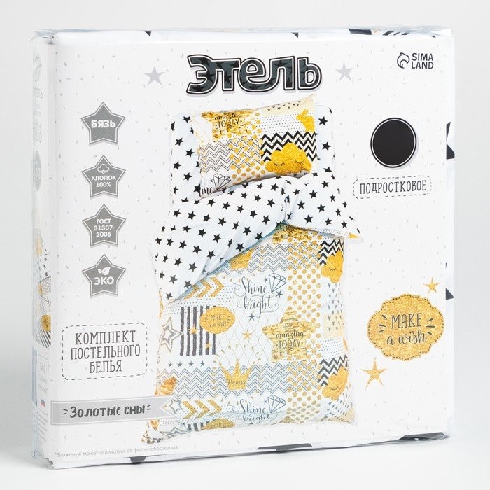 Постельное бельё «Этель» 1,5 сп Золотые сны 143×215 см, 150×214 см, 50×70 см -1 шт, 100% хл, бязь 125 г/м2