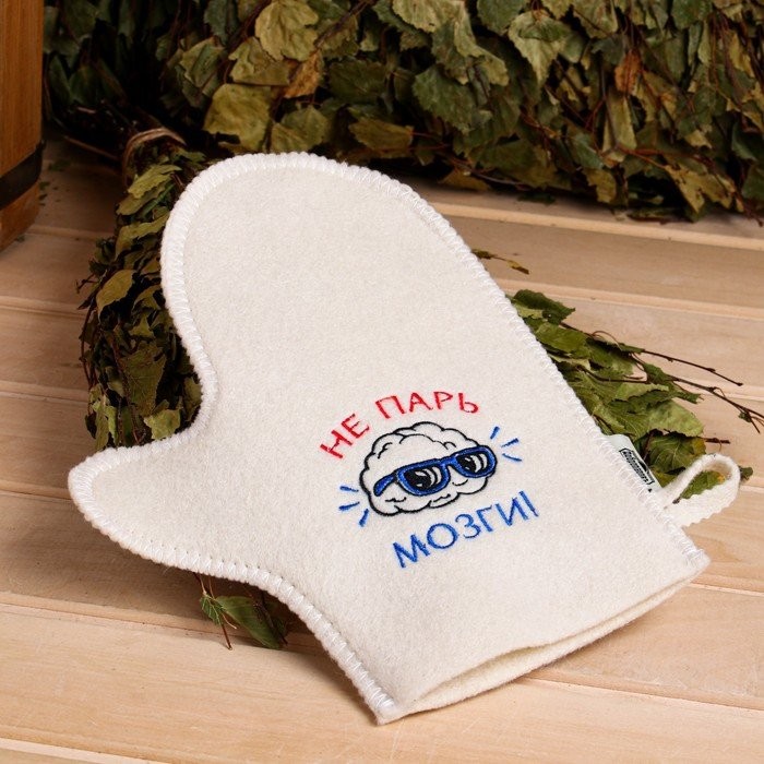 Рукавица для бани с вышивкой «Не парь мозги» первый сорт