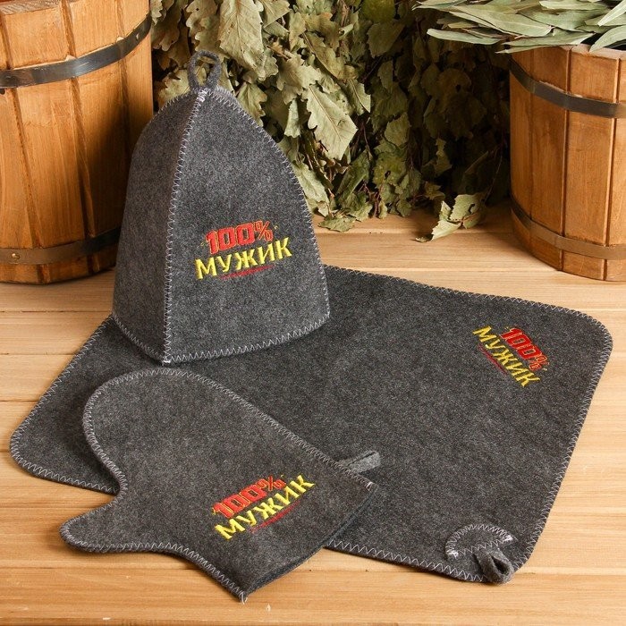 Для комфортного отдыха в парной возьмите с собой набор банных принадлежностей. Предметы из этого комплекта предохраняют тело от перегрева и являются средствами индивидуального пользования. Влажные изделия рекомендуется сушить в расправленном виде на горизонтальной поверхности. Принадлежности из войлока и фетра стирайте вручную при температуре воды 30 °C.