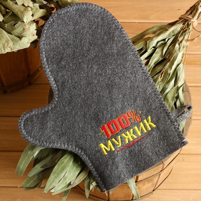 Набор для бани «100% мужику! Для 100% бани» вышивка шапка, коврик и рукавица