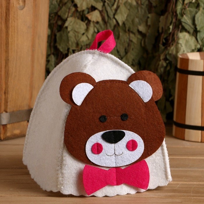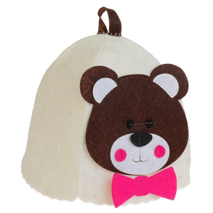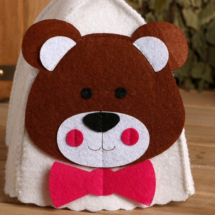 Шапка для бани с детской аппликацией «Медвежонок» войлок