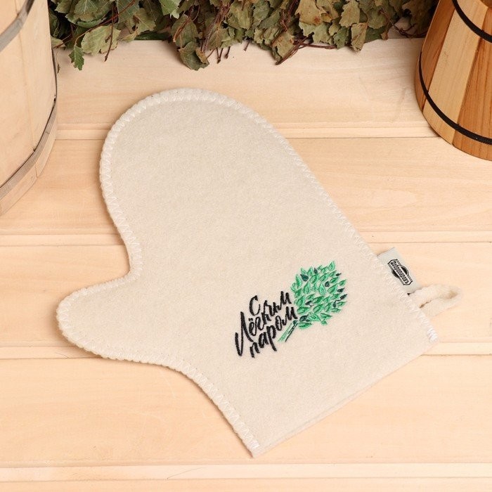 Рукавица для бани с вышивкой «С легким паром» первый сорт