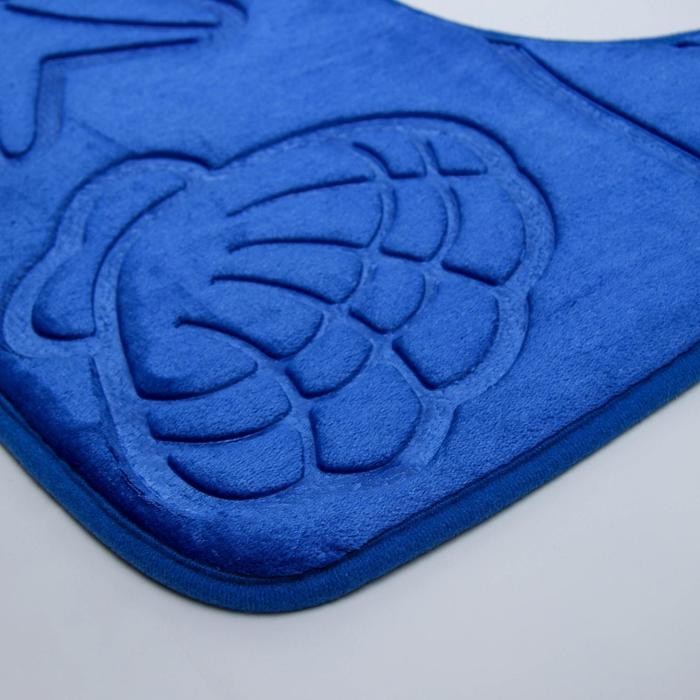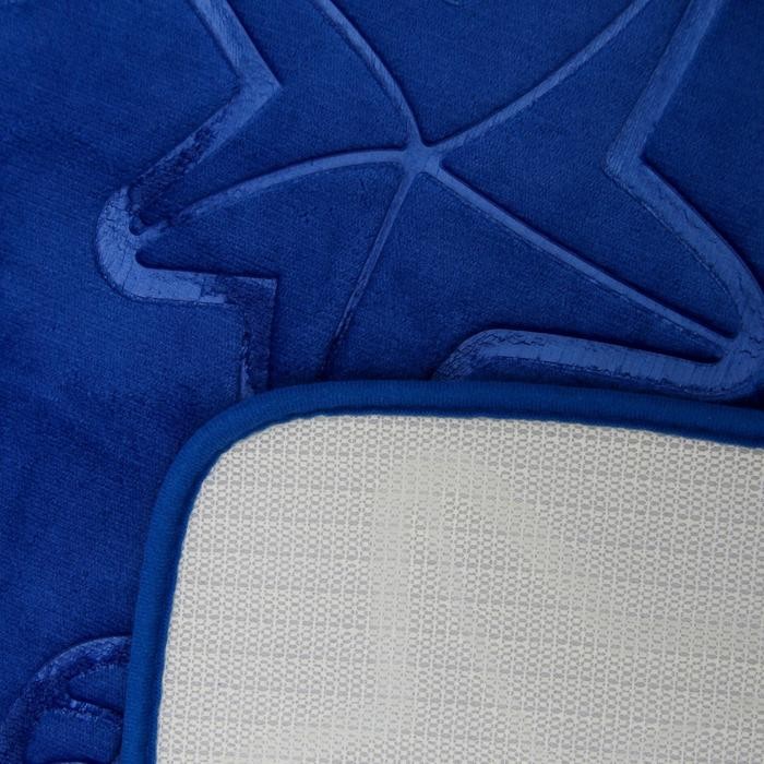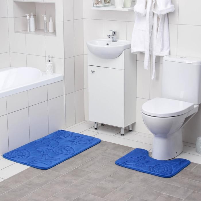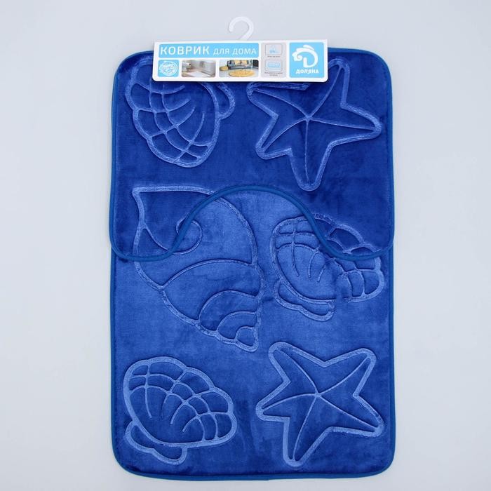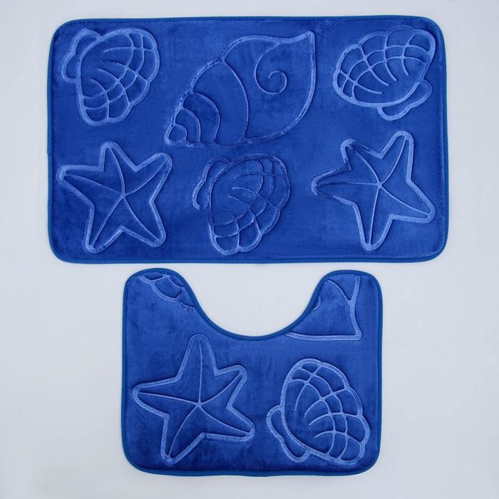 Набор ковриков для ванны и туалета Доляна «Ракушки», объёмные, 2 шт: 40×50, 50×80 см, цвет синий
