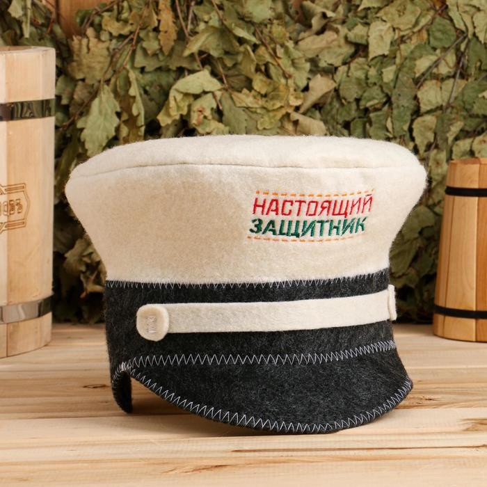 Шапка для бани Фуражка «Настоящий защитник»