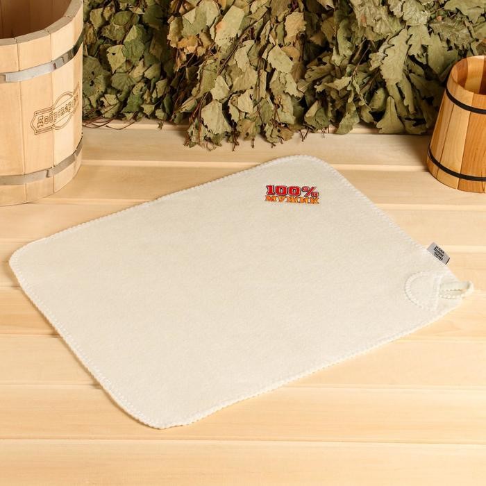 Набор для бани «100% Мужик» вышивка шапка, коврик и рукавица