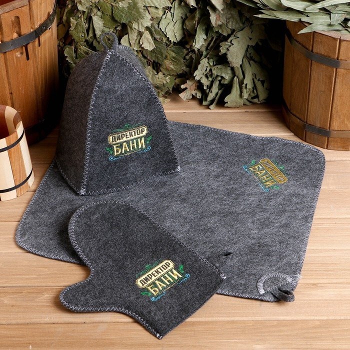 Для комфортного отдыха в парной возьмите с собой набор банных принадлежностей. Предметы из этого комплекта предохраняют тело от перегрева и являются средствами индивидуального пользования. Влажные изделия рекомендуется сушить в расправленном виде на горизонтальной поверхности. Принадлежности из войлока и фетра стирайте вручную при температуре воды 30 °C.
