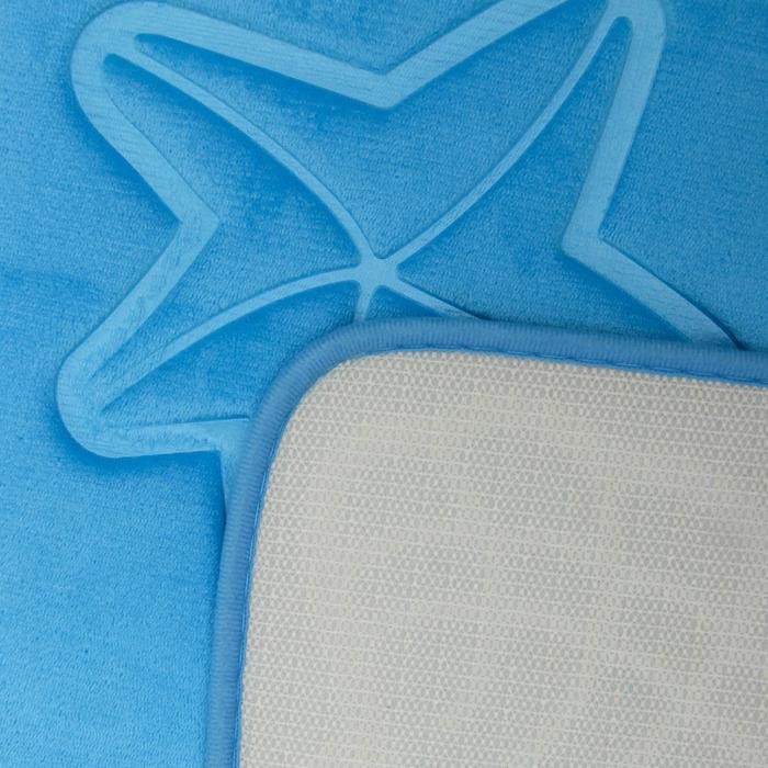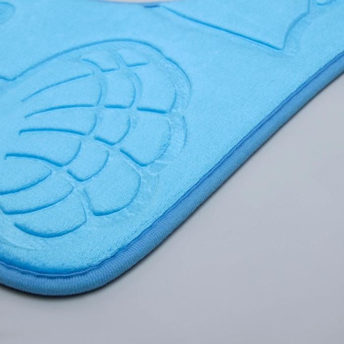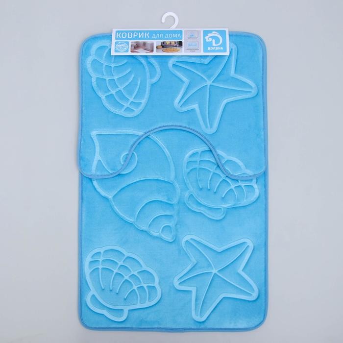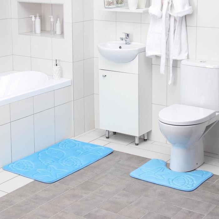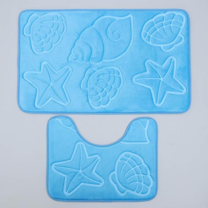 Набор ковриков для ванны и туалета «Ракушки», объёмные, 2 шт: 40×50, 50×80 см, цвет голубой