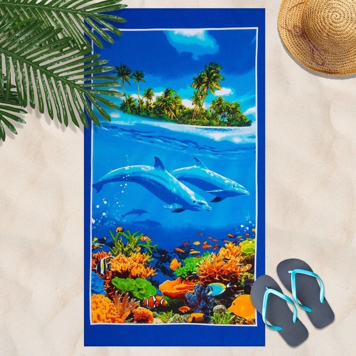 Вафельное полотенце пляжное «Дельфин» 80×150 см, разноцветный, 160г/м2,хлопок 100%