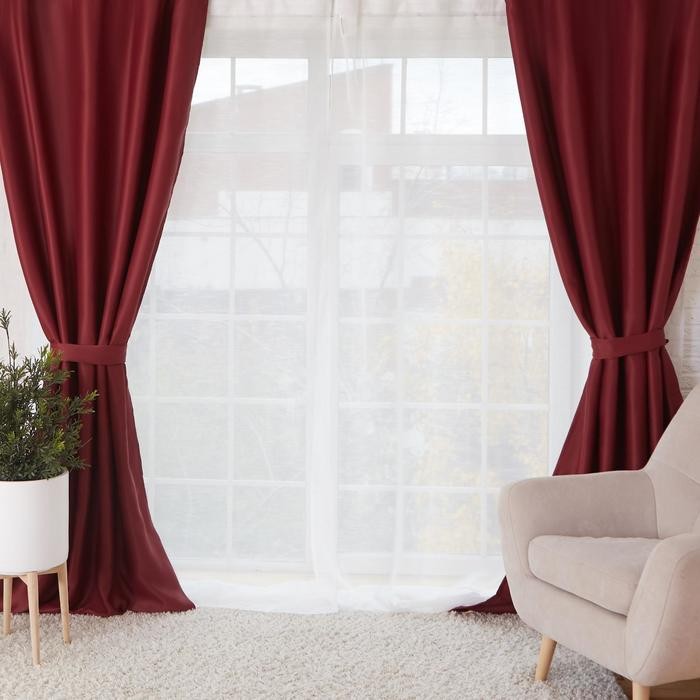 Штора портьерная Этель 135×250, цвет бордовый, блэкаут, 100% п/э