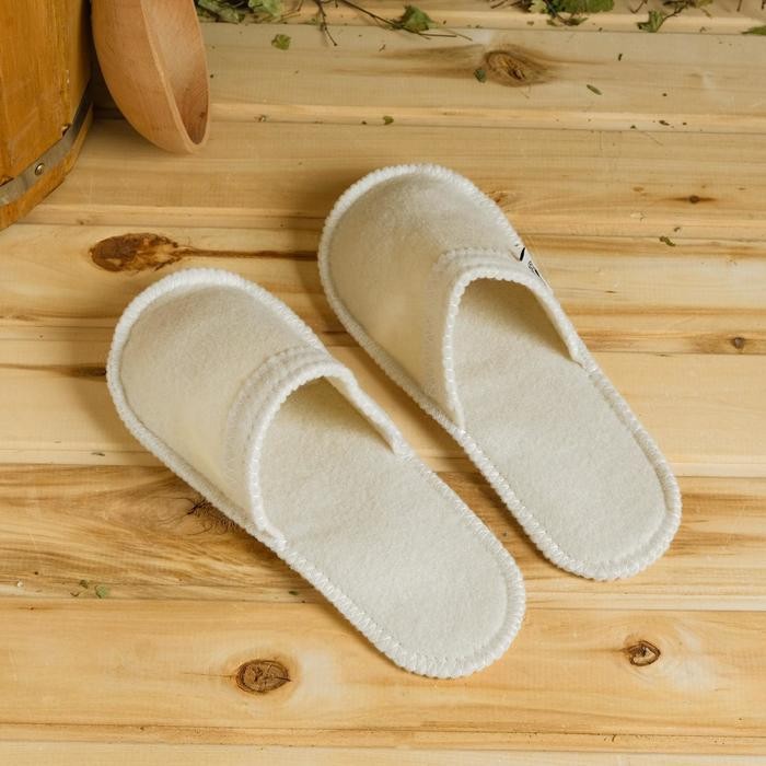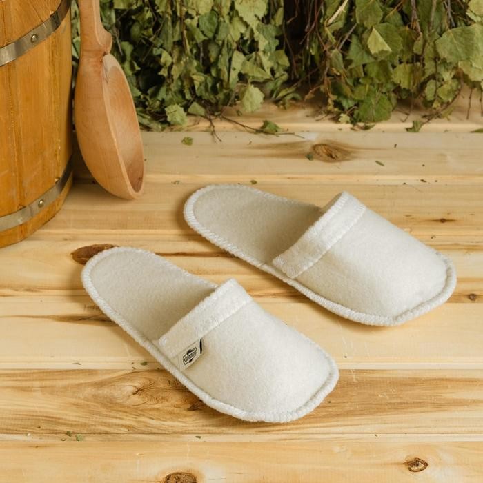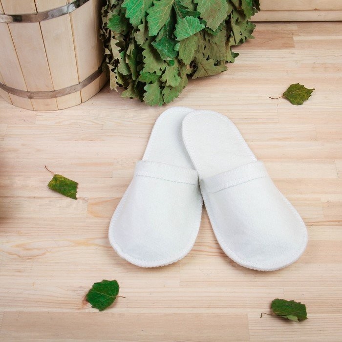 Войлочные тапочки с округлым закрытым носком обеспечивают комфорт и безопасность во время посещения бани и сауны. Натуральный войлок отлично впитывает излишки влаги, поддерживает оптимальную температуру, расслабляет и массирует стопу. Изделия выполняют также и гигиеническую функцию, что немаловажно при посещении общественных заведений.