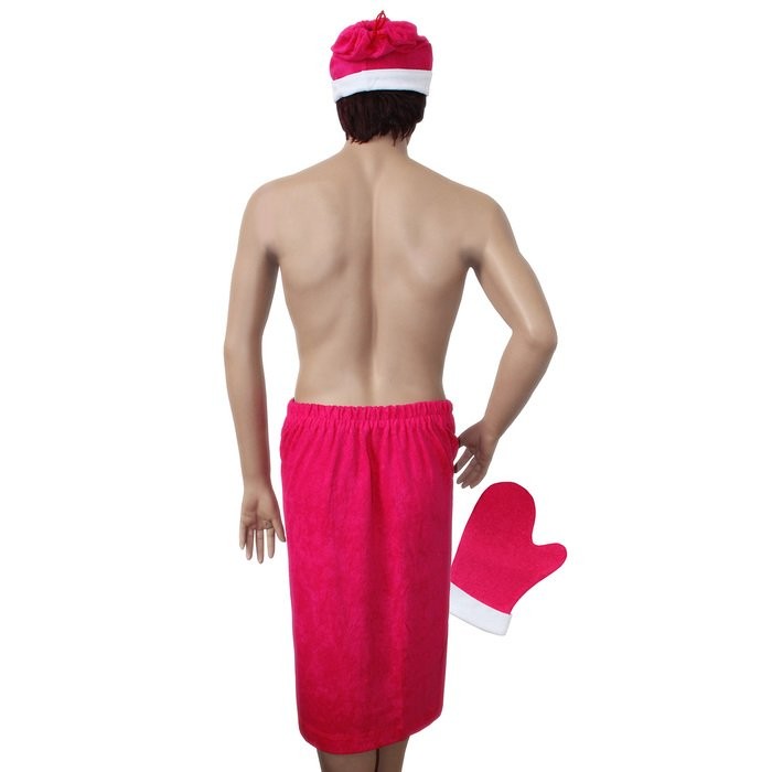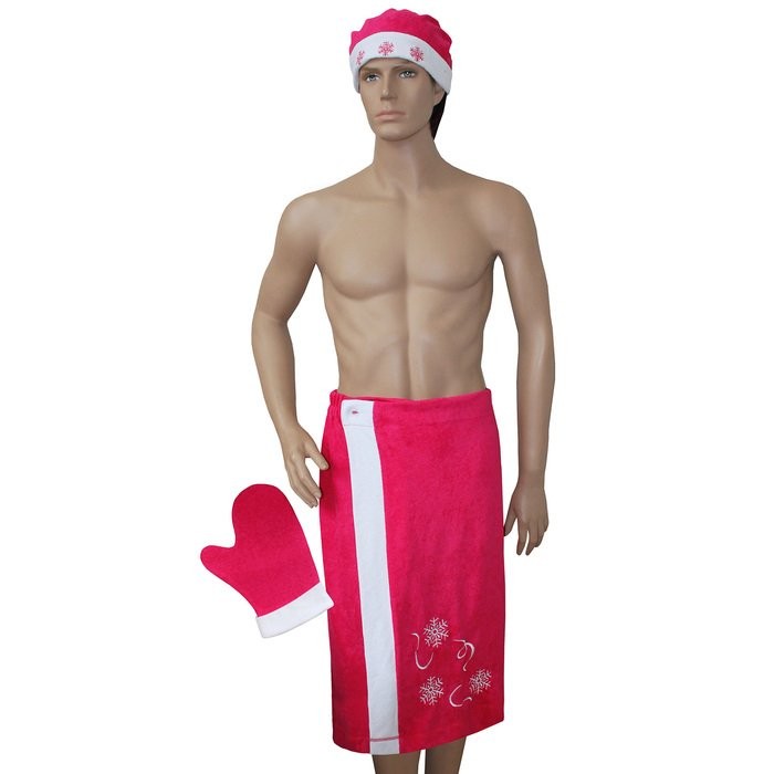 Комплект для сауны с вышив муж Дед Мороз (килт 80×150, вареж, шапка), махра 190г/м хл100%