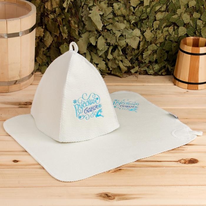 Набор банный: шапка и коврик «Русская баня» в пакете