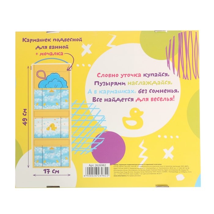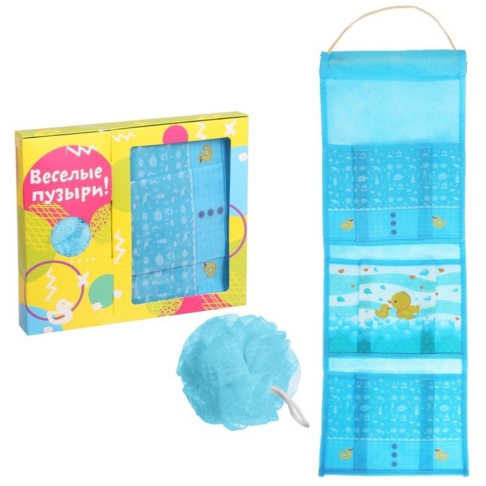 Подарочный набор «Веселые пузыри!»: кармашек подвесной пластиковый на 3 отделения и мочалка
