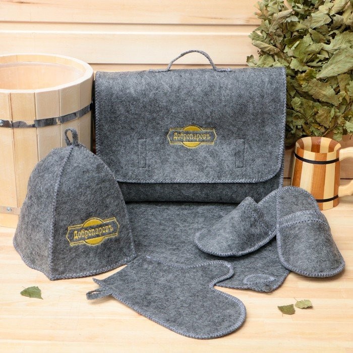 Для комфортного отдыха в парной возьмите с собой набор банных принадлежностей. Предметы из этого комплекта предохраняют тело от перегрева и являются средствами индивидуального пользования. Влажные изделия рекомендуется сушить в расправленном виде на горизонтальной поверхности. Принадлежности из войлока и фетра стирайте вручную при температуре воды 30 °C.