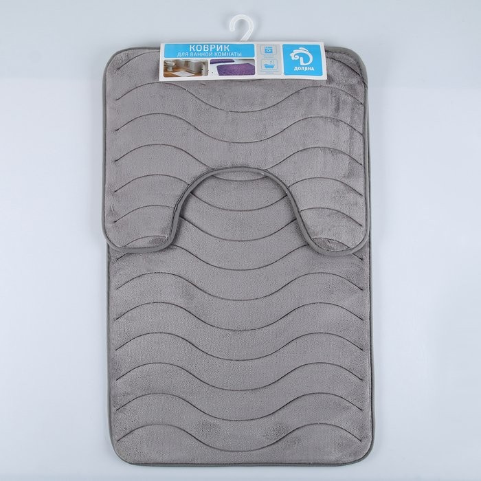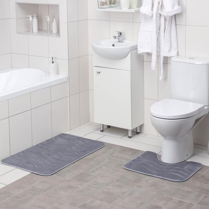 Набор ковриков для ванны и туалета Доляна «Волна», 2 шт: 40×50, 50×80 см, цвет серый