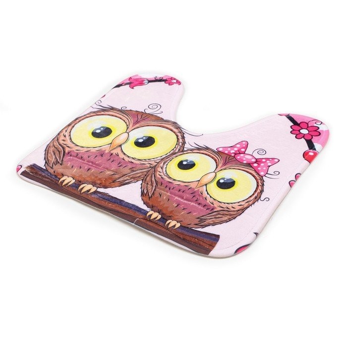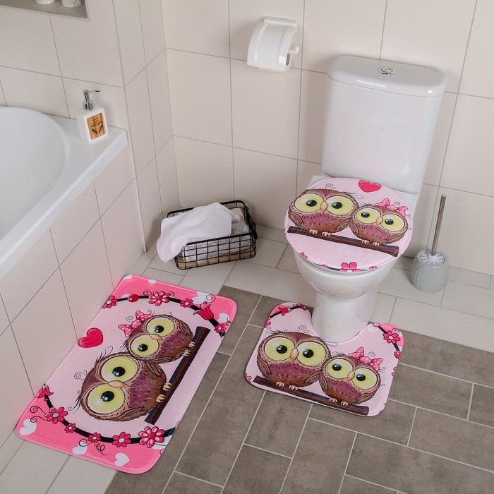 Набор ковриков для ванны и туалета Доляна «Совушки на ветке», 3 шт: 38×45, 40×43, 43×73 см, цвет розовый