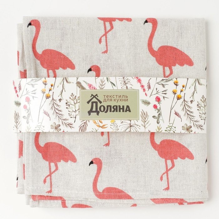 Набор салфеток Доляна 40х40см 4шт, Фламинго, 100%пэ, рогожка 200 гр/м