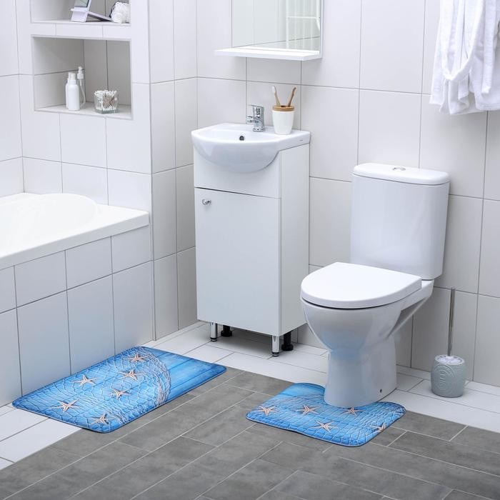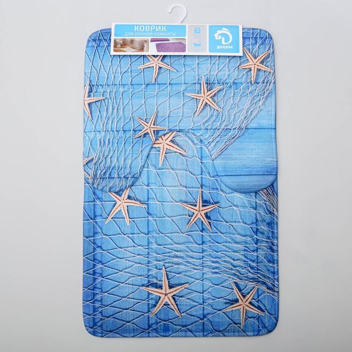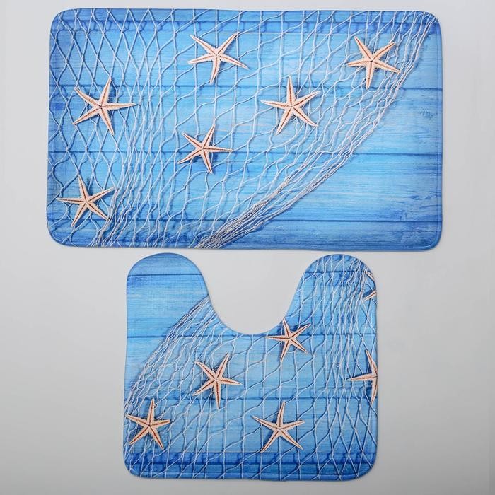 Набор ковриков для ванны и туалета Доляна «Морские звёзды», 2 шт: 40×45, 45×75 см