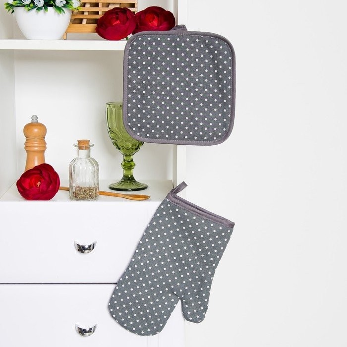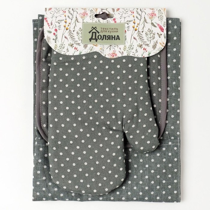 Набор Доляна фартук/прихватка/варежка, Горох сер, 100%пэ, рогожка 200 гр/м