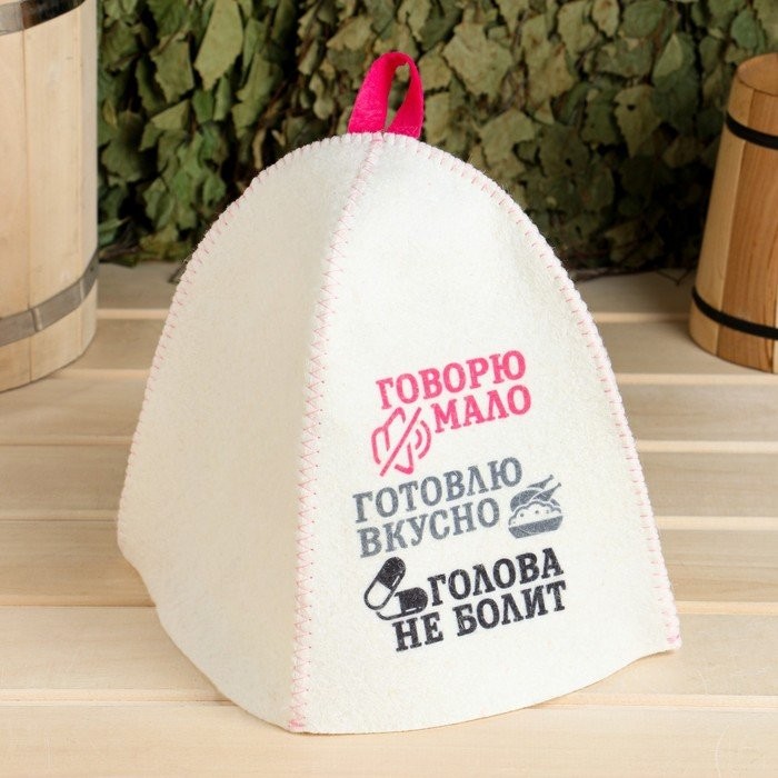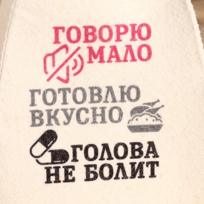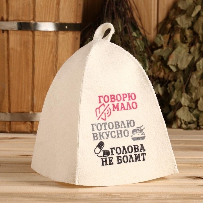 Шапка для бани «Говорю мало, готовлю вкусно, голова не болит», войлок, белая