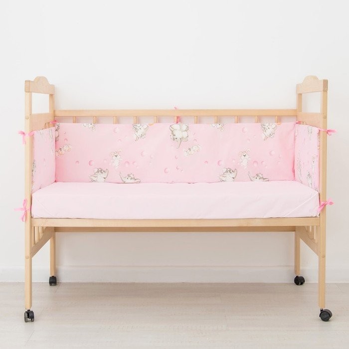Бортик «Слонята» бязь, поролон, 4 части (2 ч: 30*60см, 2 ч: 30*120см), цвет роз. 542.
