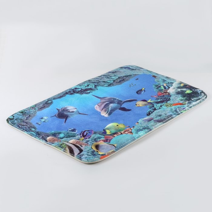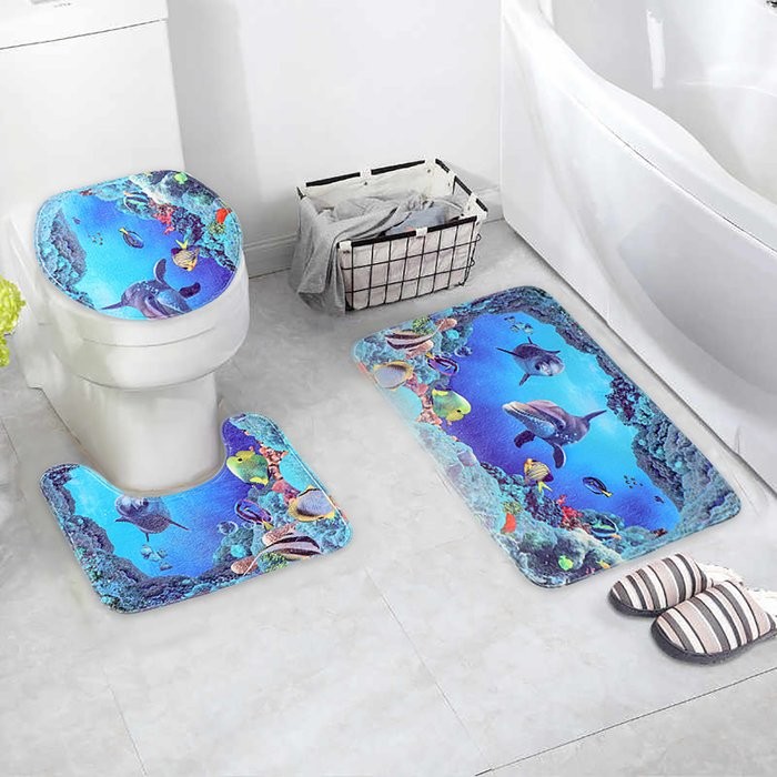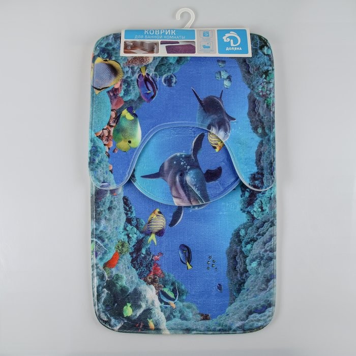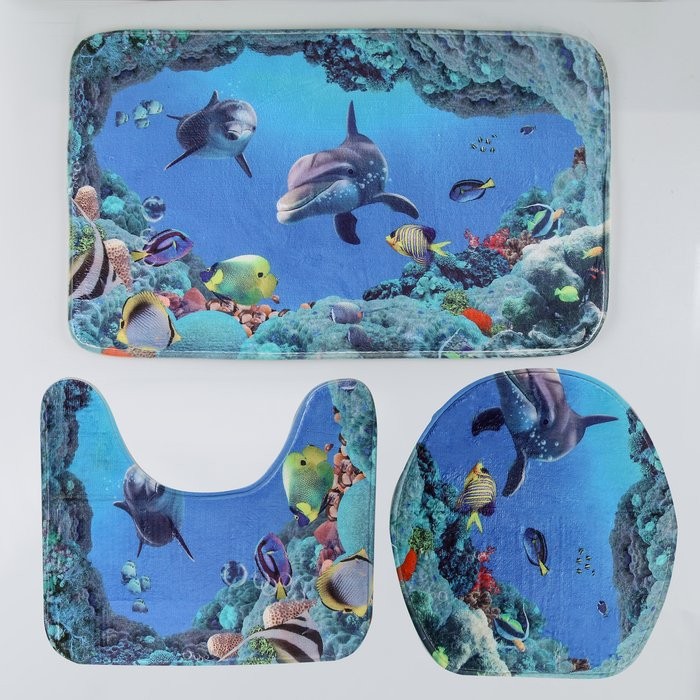 Набор ковриков для ванны и туалета Доляна «Дельфин», 3 шт: 35×39, 40×50, 45×75 см