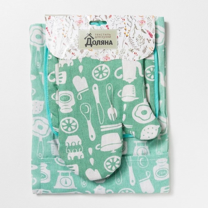 Набор Доляна фартук/прихватка/варежка, Кухня, 100%пэ, рогожка 200 гр/м