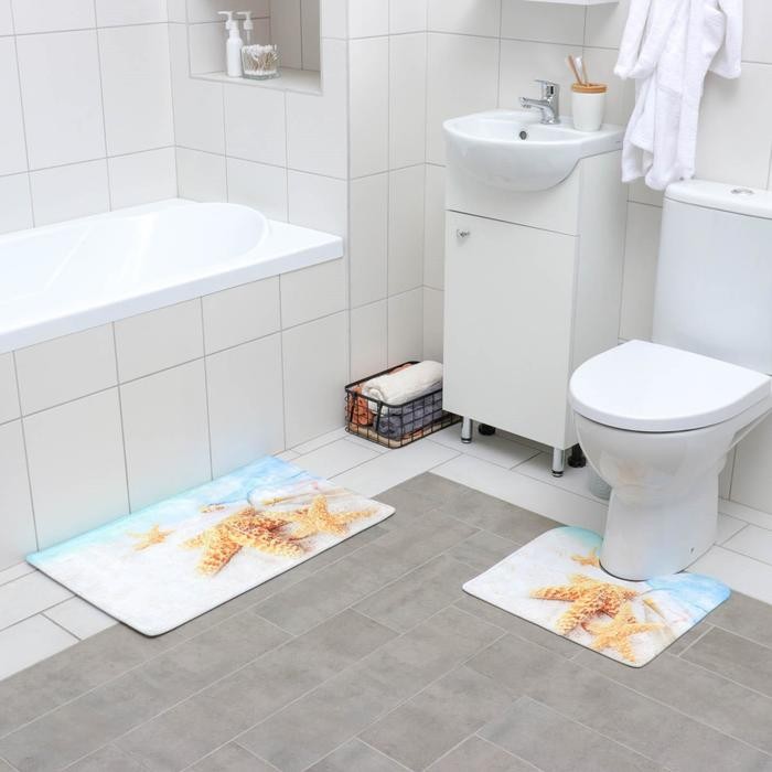 Набор ковриков для ванны и туалета Доляна «Звёзды на песке», 2 шт: 40×45, 45×75 см