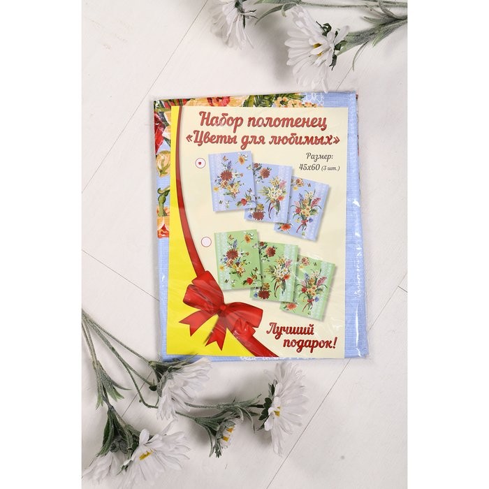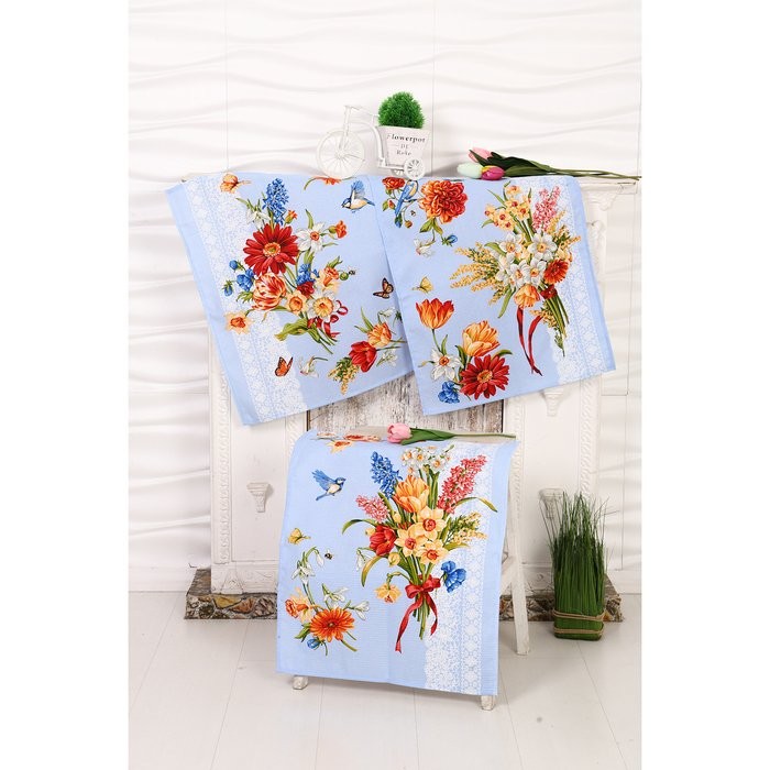 Набор полотенец в пакете Цветы для любимых 45×60 см, 3 шт, голубой, вафля, 170 гр/м2, хлопок 100% 4