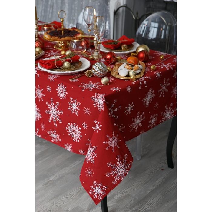 Скатерть Доляна «Новый год: Белые снежинки» 110×149 см, 100% хлопок, 164 г/м2