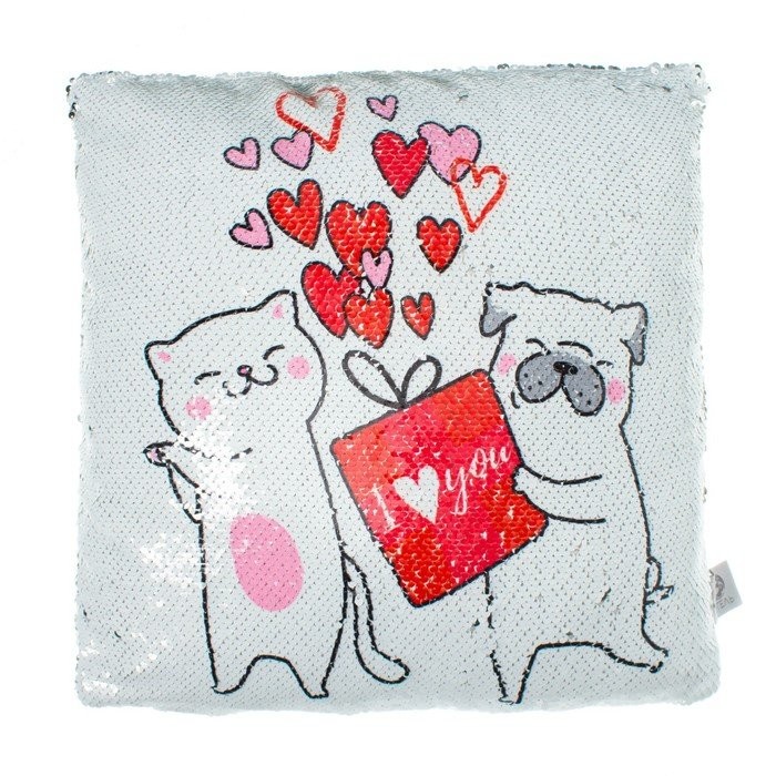 Наволочка с пайетками «Этель» Love you, 40×40 см, велюр, 100% п/э