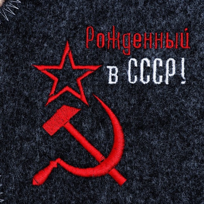 Рукавица для бани с вышивкой «Рождённый в СССР, серп и молот» серая