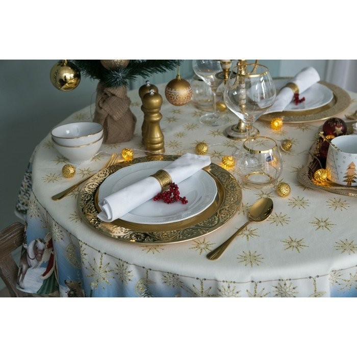 Скатерть «Этель» Christmas time d=150см +/-3см с ГМВО, 100%хл, саржа 190 гр/м2