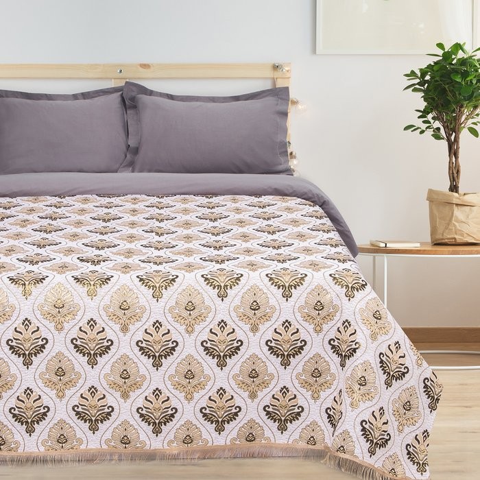Покрывало гобеленовое Этель «Барокко» с бахромой, бежевый, 240х200см, п/э 80%, хл 20% (450 г/м2)