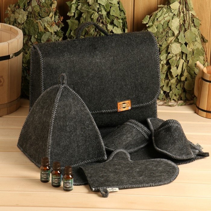 Набор для бани портфель 5 предметов, серый, 3 масла по 15 мл (можжевельник, пихта, сосна)