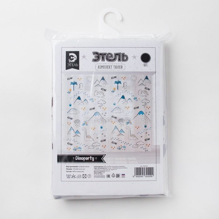 Комплект тюлей «Этель» Dinoparty 145*260 см-2 шт, 100% п/э, 140 г/м2